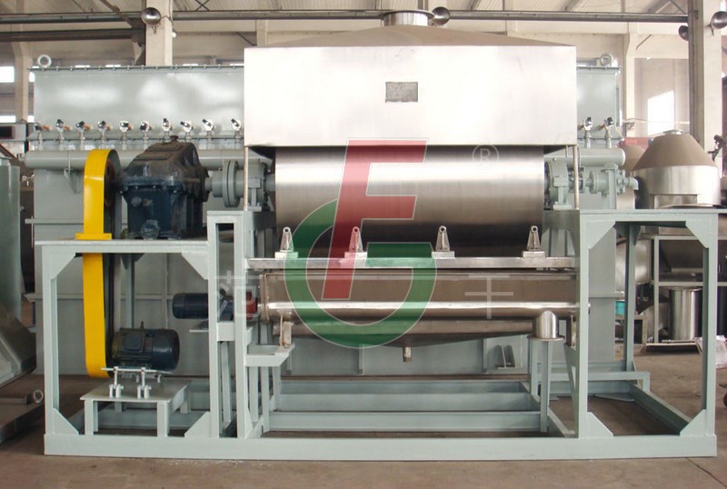 3.干燥時間短。物料的干燥周期一般只有10-15秒,適合于熱敏性物料。若將滾筒干燥機設置在真空器中,則可在減壓條件下運行。