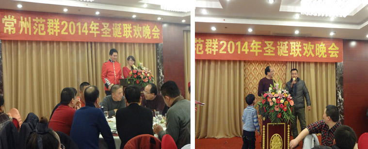 12月25日晚,在星月大酒店二樓大廳舉行常州范群2014年圣誕晚宴,公司全體員工和特邀嘉賓齊聚一堂,歡度圣誕,迎接2015年元旦的到來。晚上5點半,晚宴正式開始,首先董事長范總發(fā)言,介紹了今年公司的整體情況和目前的銷售額完成情況,今年我們范群總銷售額超過了2億元,這是全體員工共同努力的結(jié)果,也為明年的目標打下堅實的基礎(chǔ)。 同時也有需要改進的地方。接下來晚會表演開始,節(jié)目精彩紛呈,有小品、歌曲、二胡演奏等等,其中還穿插了抽獎環(huán)節(jié),讓晚會高潮迭起,歡笑聲不斷。本次晚會由公司工會組織,各部門積極參與,所有節(jié)目都是由各部門員工利用業(yè)余時間自編、自導、自演。通過這臺晚會豐富了大家的業(yè)余生活,同時也表達了大家對美好生活的向往和對新年的期待,整場晚會充滿著歡聲笑語,取得了圓滿成功。
