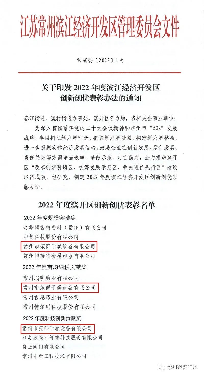為全面貫徹落實黨的二十大精神和中央、省委經濟工作會議及市區兩會精神,充分發揮濱開區“爭第一、創唯一、勇當一流”的標桿引領作用,1月11日,“春已至 共WE來” —濱開區2023年中外企業迎新聯誼會召開。常州范群榮獲2022年度”規模突破獎““畝均納稅貢獻獎”“科技創新貢獻獎”。