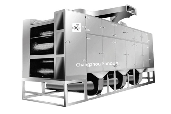 特點:成批生產連續式干燥;用于透氣性較好的片狀、條狀、塊狀或顆狀物料的干燥;對于脫水蔬菜、中藥飲片等類含水率高、而物料溫度不允許高的物料尤為合適;對脫水濾餅類的膏狀物料,以造粒或制成棒狀后亦可干燥;該系列干燥機具有干燥速度快、蒸發強度高、產品質量好的優點。