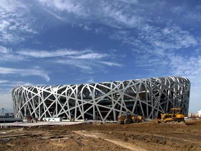 國家體育場的“鳥巢”是由一系列輻射式門式鋼桁架圍繞碗狀坐席區(qū)旋轉而成,結構科學簡潔,設計新穎獨特,為國際上極富特色的巨型建筑。